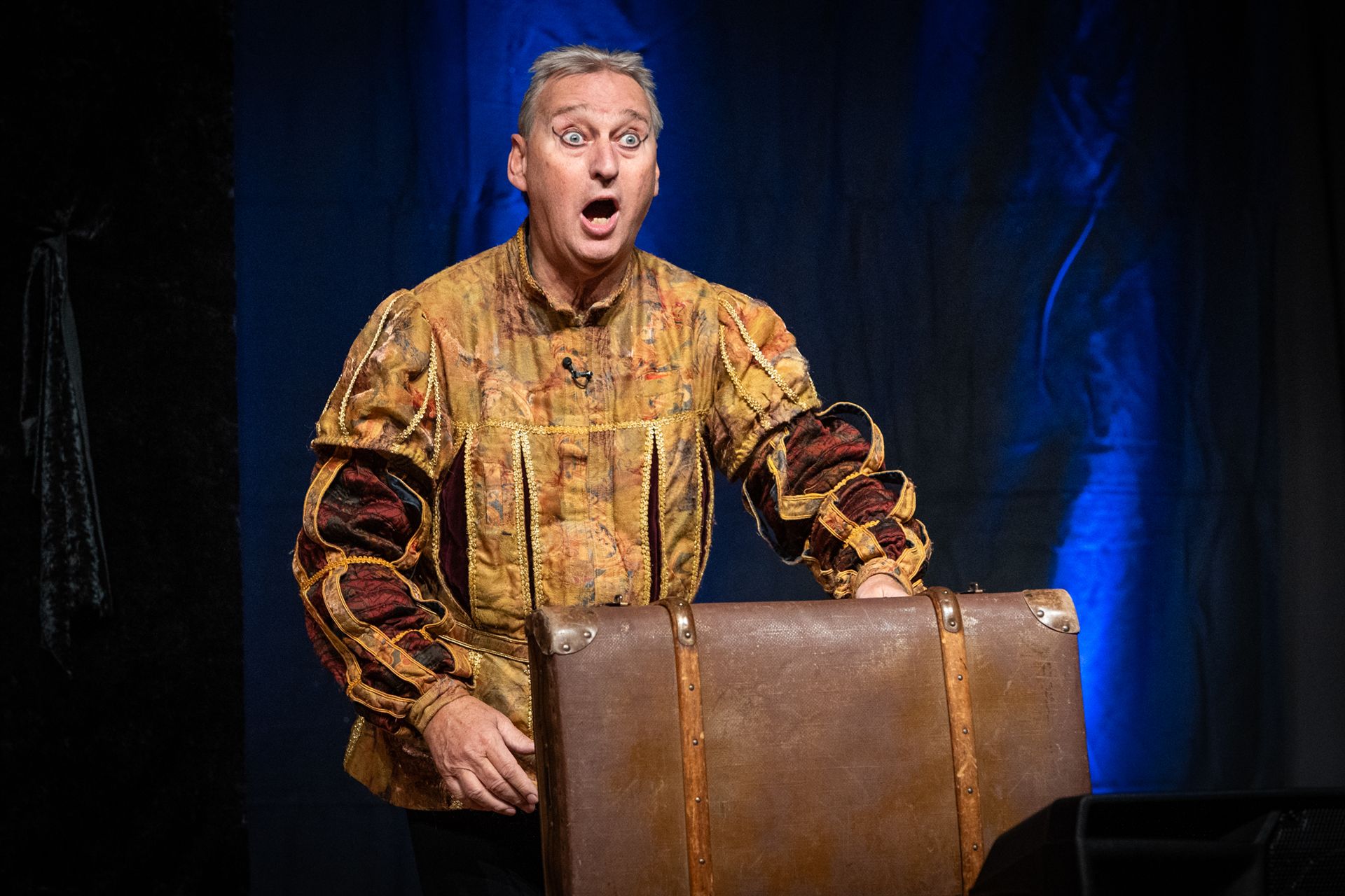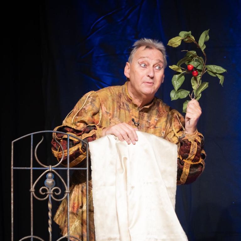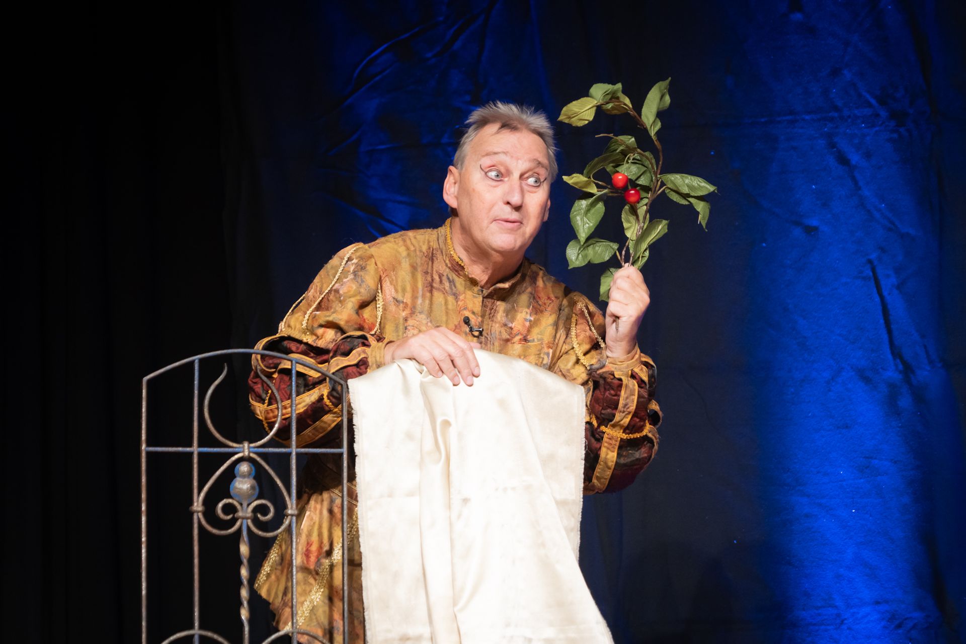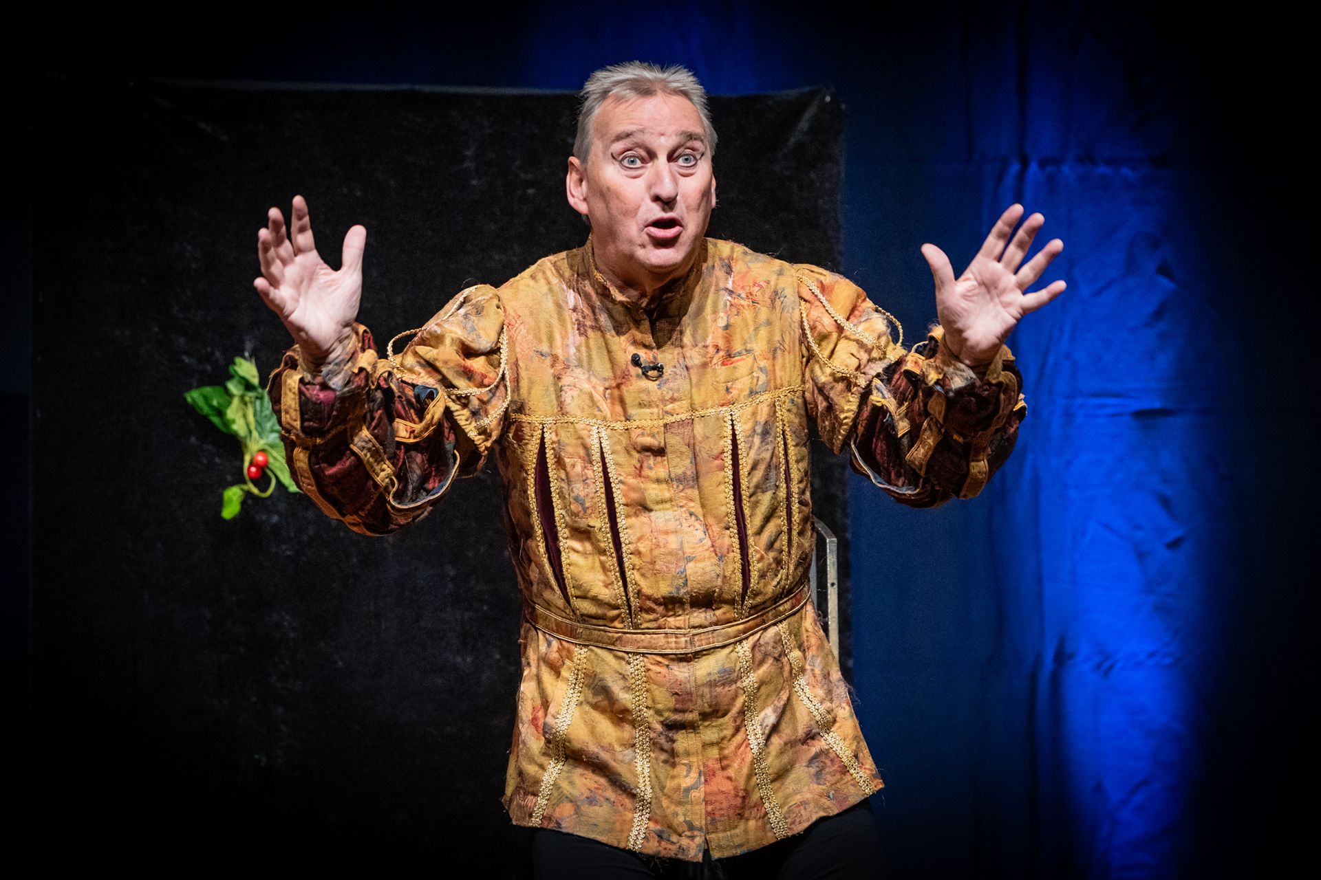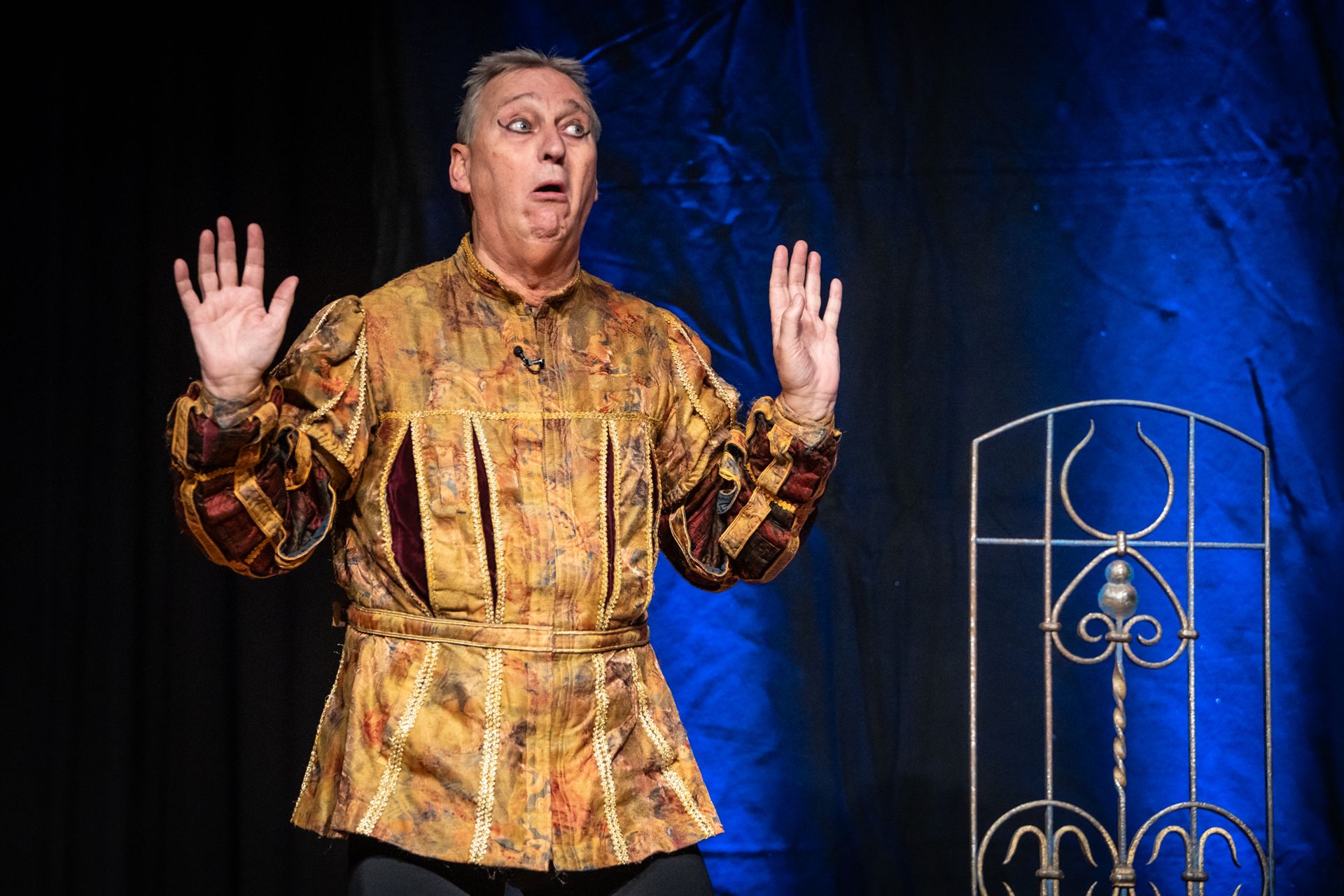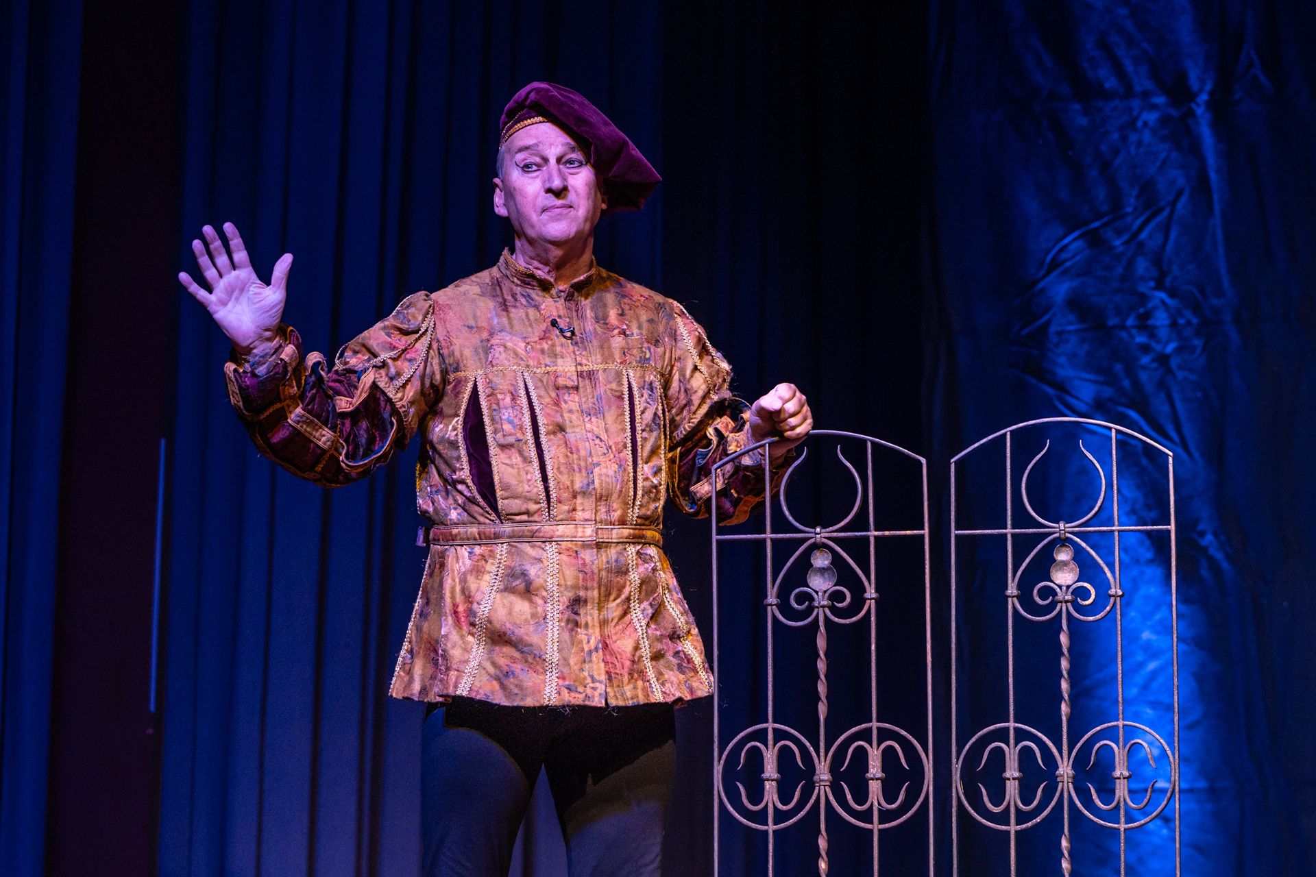 Wie bei all seinen elf überarbeiteten Stücken, die er erfolgreich auf deutschsprachigen Bühnen parallel im Programm hat, hält Lafrenz sich auch bei „Romeo und Julia“ in Grundzügen an Shakespeares Tragödie: Die Liebe zwischen Romeo Montague und Julia Capulet, die zwei verfeindeten Familien angehören, wird zwar in einer Ehe durch Pater Lorenzo heimlich besiegelt, ist aber durch Intrigen und Verwicklungen zum Scheitern verurteilt und mündet im Tod der beiden Hauptprotagonisten. Damit endet aber auch schon jede Gemeinsamkeit mit dem Original. Die Geschichte wird beispielsweise aus der Sicht eines Nachfahren von Romeos treuem Diener Balthasar erzählt, der sich, gemeinsam mit dem Publikum, plötzlich im norditalienischen Verona des ausgehenden 16. Jahrhunderts wiederfindet. Und von da ab ist man auch schon mittendrin in der Handlung – und Bernd Lafrenz, der „Gaukler mit den vielen Gesichtern“ ganz offensichtlich in seinem Element.
