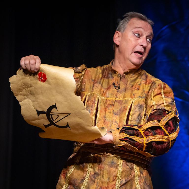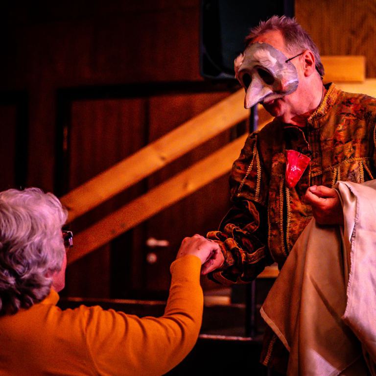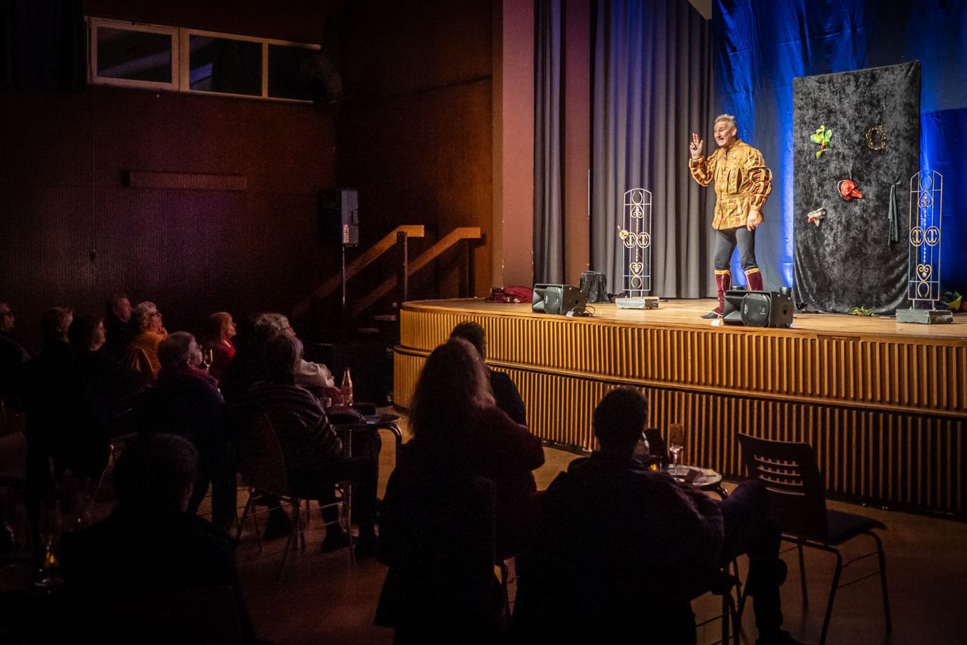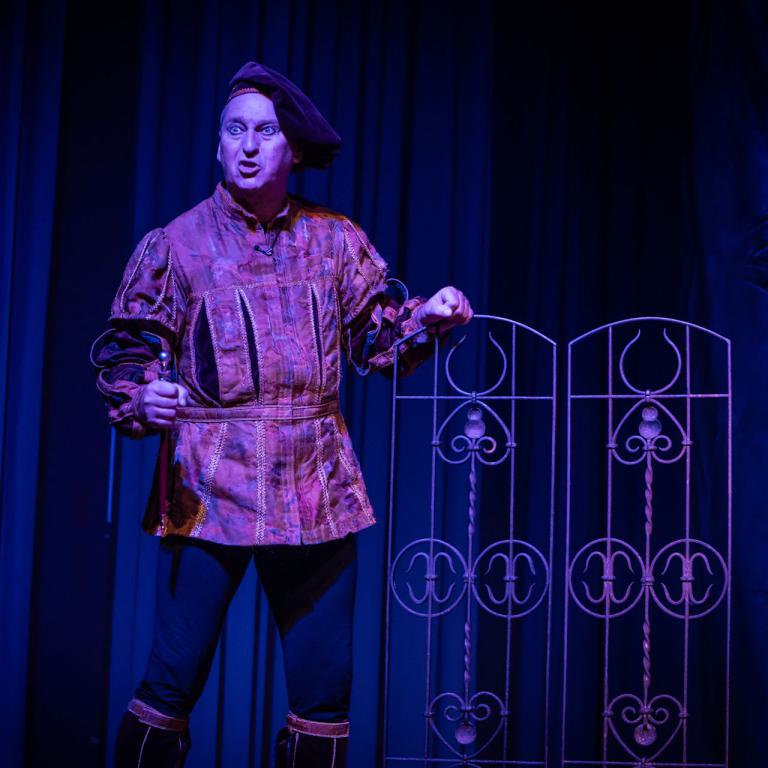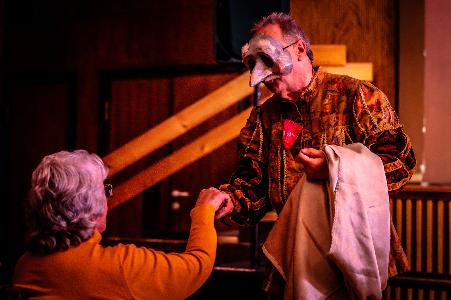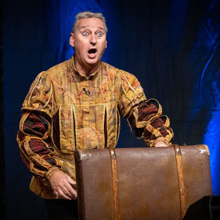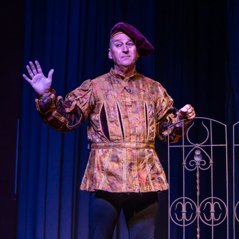 Wie bei all seinen elf überarbeiteten Stücken, die er erfolgreich auf deutschsprachigen Bühnen parallel im Programm hat, hält Lafrenz sich auch bei „Romeo und Julia“ in Grundzügen an Shakespeares Tragödie: Die Liebe zwischen Romeo Montague und Julia Capulet, die zwei verfeindeten Familien angehören, wird zwar in einer Ehe durch Pater Lorenzo heimlich besiegelt, ist aber durch Intrigen und Verwicklungen zum Scheitern verurteilt und mündet im Tod der beiden Hauptprotagonisten. Damit endet aber auch schon jede Gemeinsamkeit mit dem Original. Die Geschichte wird beispielsweise aus der Sicht eines Nachfahren von Romeos treuem Diener Balthasar erzählt, der sich, gemeinsam mit dem Publikum, plötzlich im norditalienischen Verona des ausgehenden 16. Jahrhunderts wiederfindet. Und von da ab ist man auch schon mittendrin in der Handlung – und Bernd Lafrenz, der „Gaukler mit den vielen Gesichtern“ ganz offensichtlich in seinem Element.