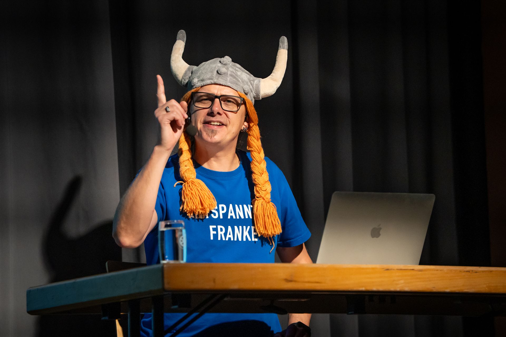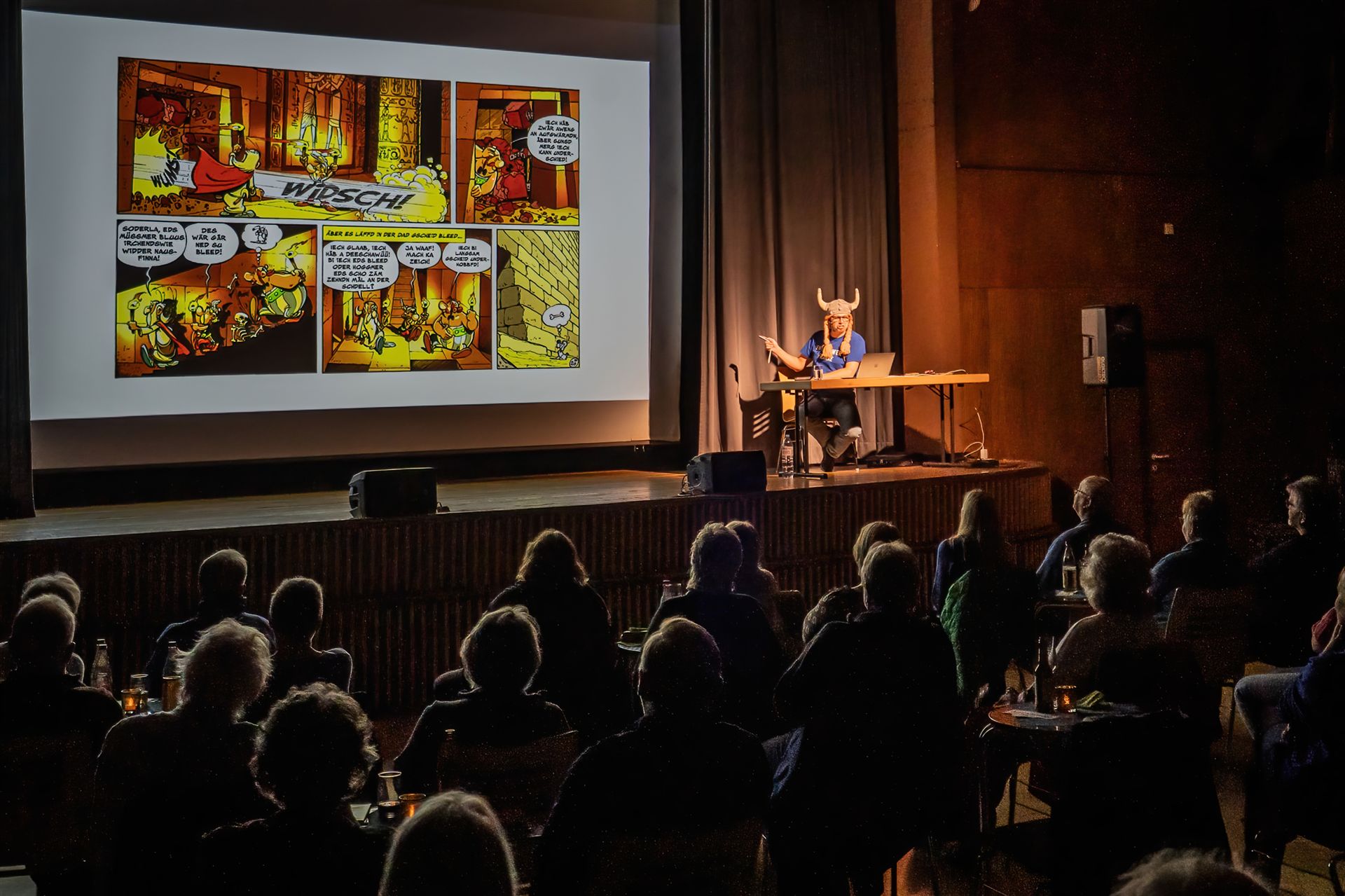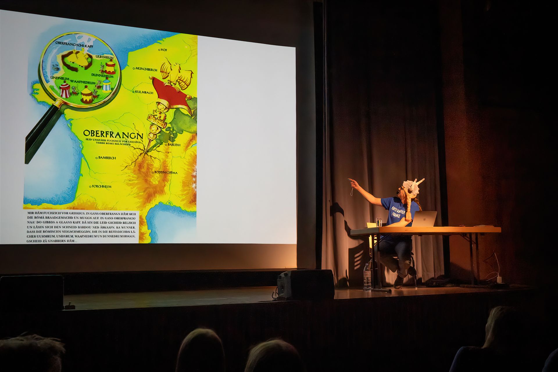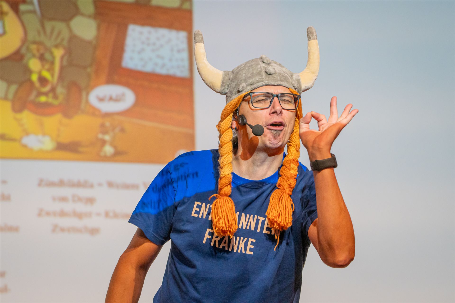 Wer also, wenn nicht Stefan Eichner, könnte prädestiniert dafür sein, einen Mundart-Asterix auf Oberfränkisch zu schreiben. „Denn der hat eindeutig noch gefehlt“, befand Eichner damals selbstbewusst – und sollte Recht behalten: Die Erstauflage seiner Erstling-Bandes „Dunnerkeil“ war innerhalb eines Tages ausverkauft. Mittlerweile sind, beinahe im jährlichen Rhythmus, zwei weitere übersetzte Bände hinzugekommen. Sein zweites, in Osterburken vorgestelltes Werk, “Asterix bei die Bieramiden“, spielt in Ägypten, wo statt der sonst gewohnten Gallier natürlich die unbeugsamen und furchtlosen Oberfranken Asterix, Obelix, Miraculix und die „Fusshubn“ Idefix der ägyptischen Herrscherin Kleopatra dabei helfen, eine ehrgeizige Wette gegen den römischen Kaiser Caesar zu gewinnen; die Handlung dürfte nicht nur eingefleischten Fans bekannt sein.