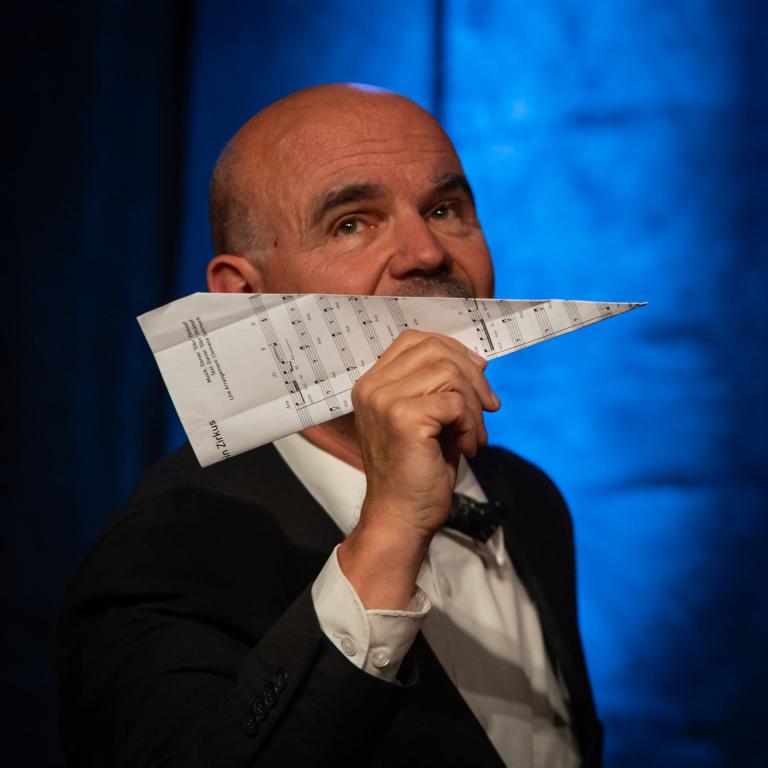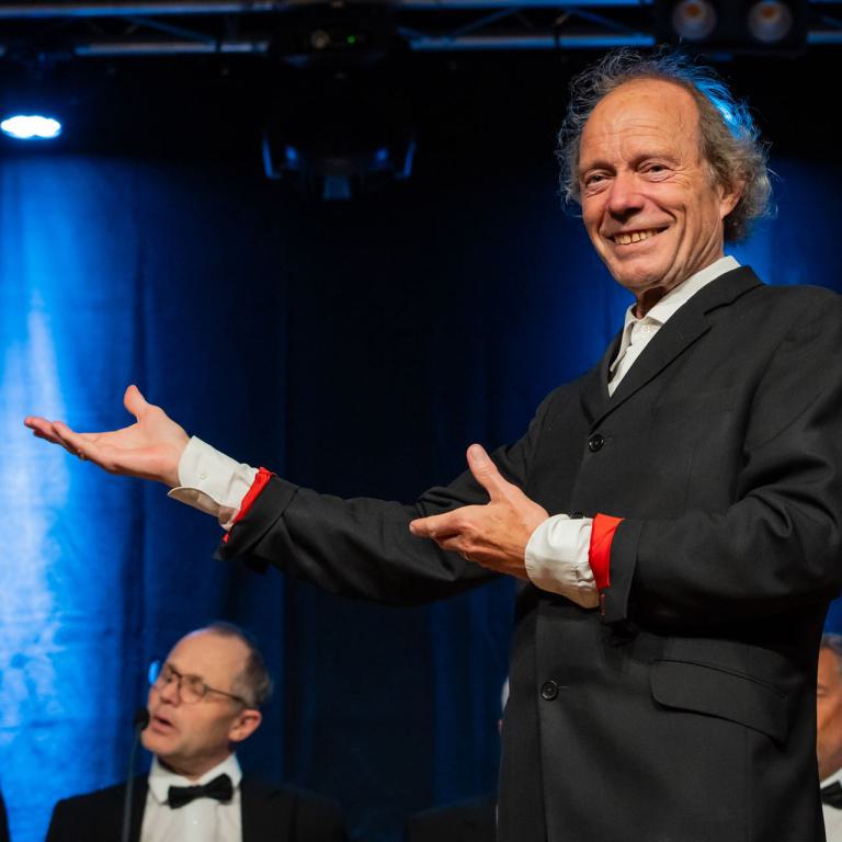 Musikalischer Leiter und kreativer Kopf der Formation ist seit Beginn Bernhard Bentgens, der in gewohnter Manier mit Witz und Spontaneität durchs Programm führte und seinen Chor mit viel Engagement dirigierte. Entstanden ist das Projekt vor 37 Jahren, als ein Bekannter beim studierten Multiinstrumentalisten und Chorleiter Bentgens Gesangsstunden nehmen wollte und ihm sich schließlich so viele weitere Interessierte anschlossen, dass man entschied, doch gleich einen Männerchor zu gründen. Beschränkte sich das Repertoire zu Beginn noch auf das Covern bekannter Lieder, wurden nach und nach immer mehr eigene Texte und Kompositionen von Bentgens verarbeitet. Inzwischen steuern auch die Sänger eigene Songs und Arrangements bei und so entstehen gemeinsam Programme, die sowohl inhaltlich als auch musikalisch anspruchsvoll und unterhaltend zugleich sind. Nicht umsonst ist der Heidelberger HardChor mit den Jahren zu einem absoluten Publikumsmagneten in der Rhein-Neckar-Region geworden und die Veranstalter der Kulturkommode dürfen durchaus stolz darauf sein, dass es ihnen wieder gelungen ist, den HardChor in die Römerstadt zu holen.