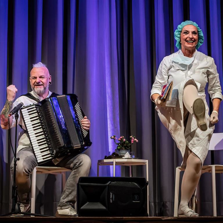 „Heile Welt fürs kranke Gemüt“ umschreibt die Schauspielerin und Sängerin Saskia Kästner die Idee, die hinter Schwester Cordula steckt. Begonnen hatte alles, als sie vor etwa 15 Jahren im Rahmen einer Ausstellungsreihe passend zum Thema ein Stück heile Welt aus Groschenromanen zunächst noch unkommentiert vortrug, um schließlich die besten Original-Zitate, Selbstgeschriebenes und medizinische Erfahrungsberichte von Zuschauern zu einer Arztroman-Essenz zu verdichten: der Grundstock ihres heutigen Bühnenprogramms. Als sie einige Zeit später den Musiker und Regisseur Dirk Rave bei einer gemeinsamen Theaterproduktion kennenlernt, wird schnell klar, dass er mit seinem Akkordeon Saskias Texte um eine musikalische Komponente bereichern würde. Und so singt sich seither Schwester Cordula mit französischen Chansons, Schlager und Pop-Songs durch die Handlung der Romane und ihrer Mixtur aus hoffnungsloser Romantik, Drama und einer Prise Erotik. Und niemand kann diese unterschiedlichen Gefühlswelten so glänzend überhöhen und mit Witz und Ironie darstellen wie Saskia Kästner als Schwester Cordula.