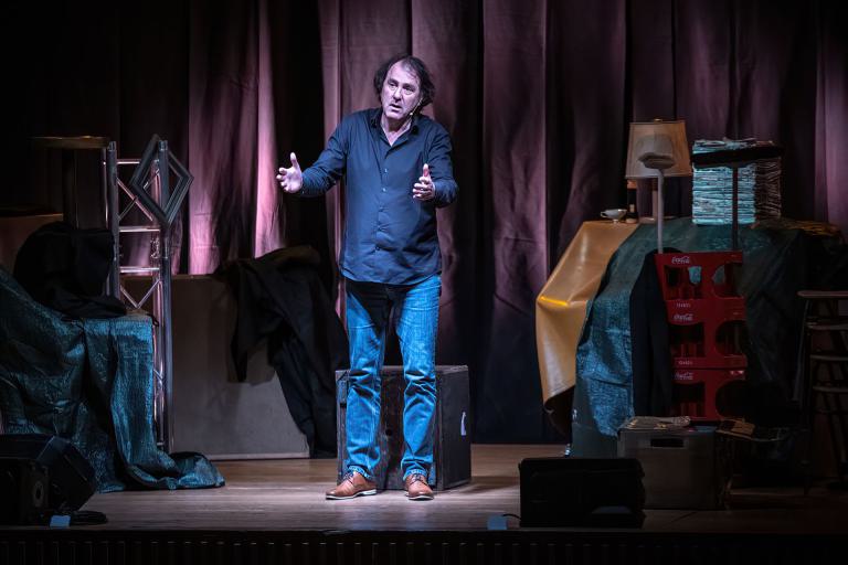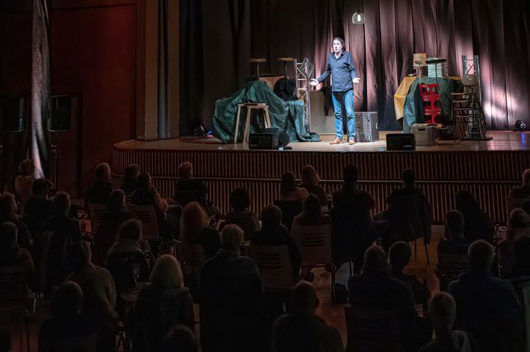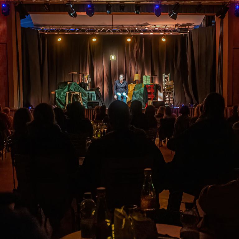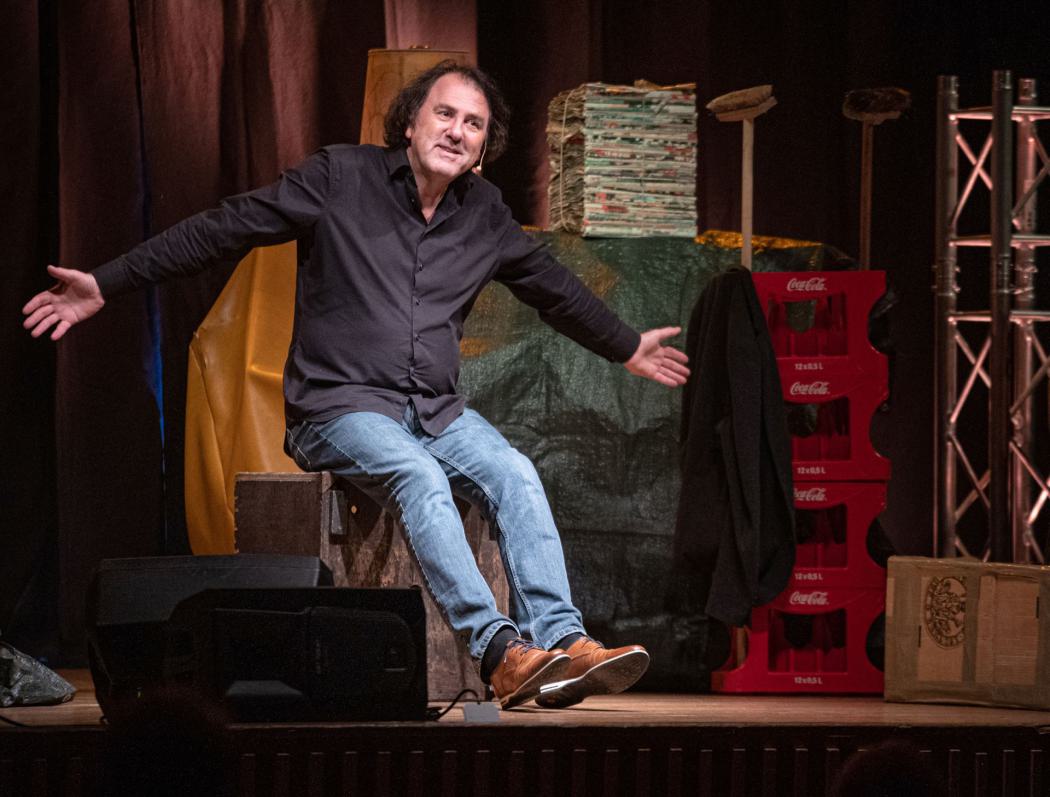 Der geborene Österreicher und studierte Theologe Stefan Waghubinger lebt seit mittlerweile 30 Jahren in Stuttgart und veröffentlichte unter anderem Cartoons und Kinderbücher, ehe er 2011 sein erstes abendfüllendes Programm im deutschsprachigen Raum vorstellte. Sein aktuelles Werk „Jetzt hätten die guten Tage kommen können“ knüpft inhaltlich an das letzte Programm an und öffnet auf unterhaltsame Weise den Blick auf Sinn und Unsinniges im Alltag, auf Zukunft und Vergangenes und nicht zuletzt auf das Leben und dessen Endlichkeit. Man möchte Waghubingers Bühnen-Alter-Ego fast etwas bedauern, wie er da so verloren auf dem Dachboden seiner Eltern sitzt, wo er seine persönlichen Gegenstände – natürlich nur vorübergehend – unterstellen will, nachdem er aufgrund der Trennung von seiner Frau aus der gemeinsamen Wohnung ausziehen musste. Obendrein versetzt ihn momentan sogar sein Freund Wolfgang, der die Sachen eigentlich vorbeibringen soll. Und so findet er in den abgelegten Requisiten seiner Vergangenheit immer wieder Bezüge auf das Hier und Jetzt und hat ausreichend Zeit, das Publikum an seinen Gedanken teilhaben zu lassen. Stefan Waghubinger spannt im Verlauf des Abends einen weiten thematischen Bogen, erzählt ausführlich von Kindheitserinnerungen, seiner gescheiterten Beziehung und den anderen vielen Sollbruchstellen des Lebens.